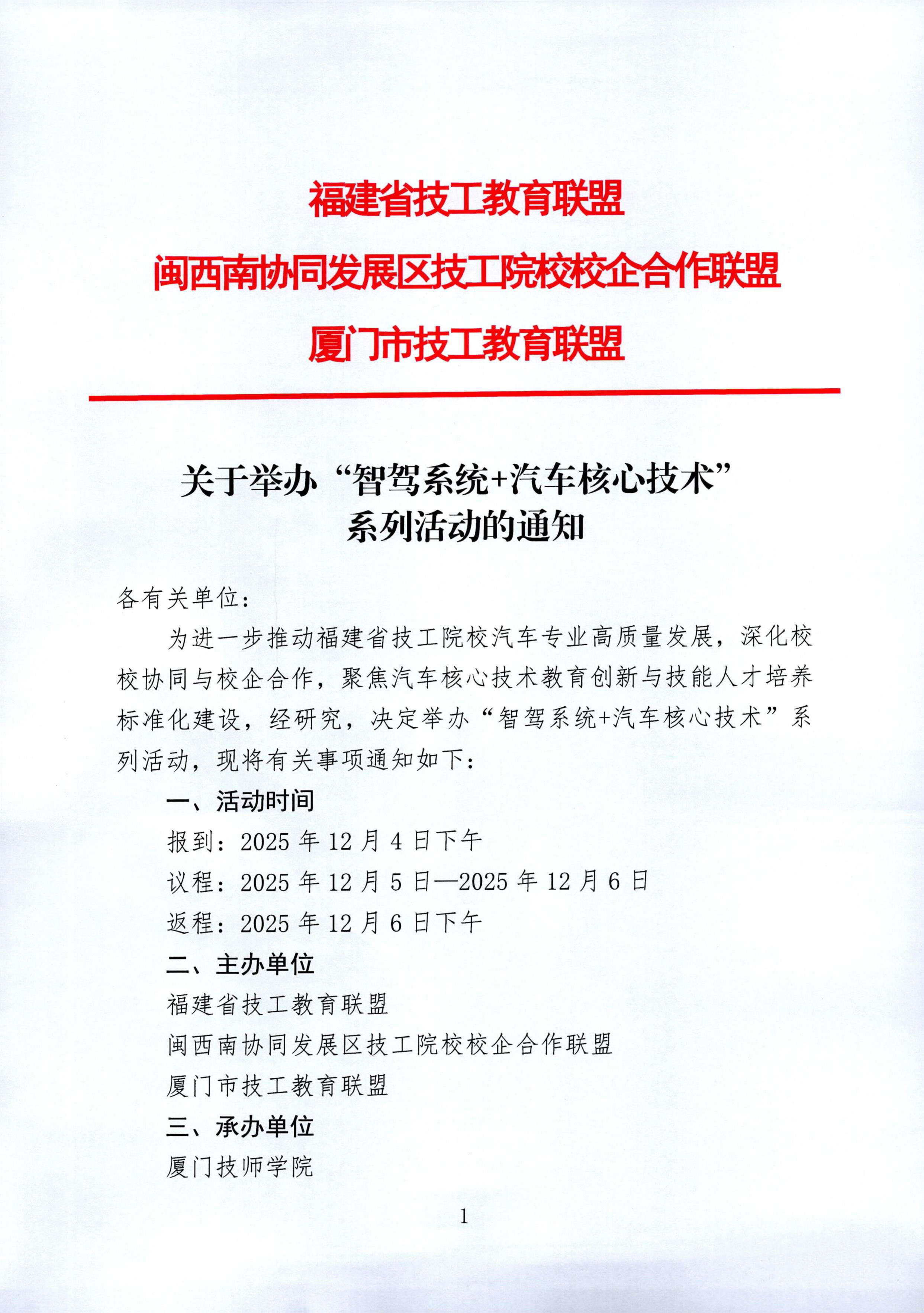 关于举办“智驾系统+汽车核心技术” 系列活动的通知